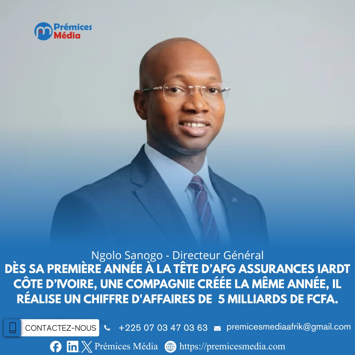 Nommé à la tête d’AFG Assurances IARDT Côte d’Ivoire en janvier 2025, une compagnie ayant officiellement lancé ses activités la même année, Ngolo Sanogo a conduit son développement avec une vision stratégique claire. Résultat : dès sa première année d’exercice sous son leadership, l’entreprise enregistre un chiffre d’affaires de 5 milliards de F CFA, une performance qui témoigne d’une gestion rigoureuse, d’une ambition affirmée et d’un leadership résolument tourné vers l’excellence durable.