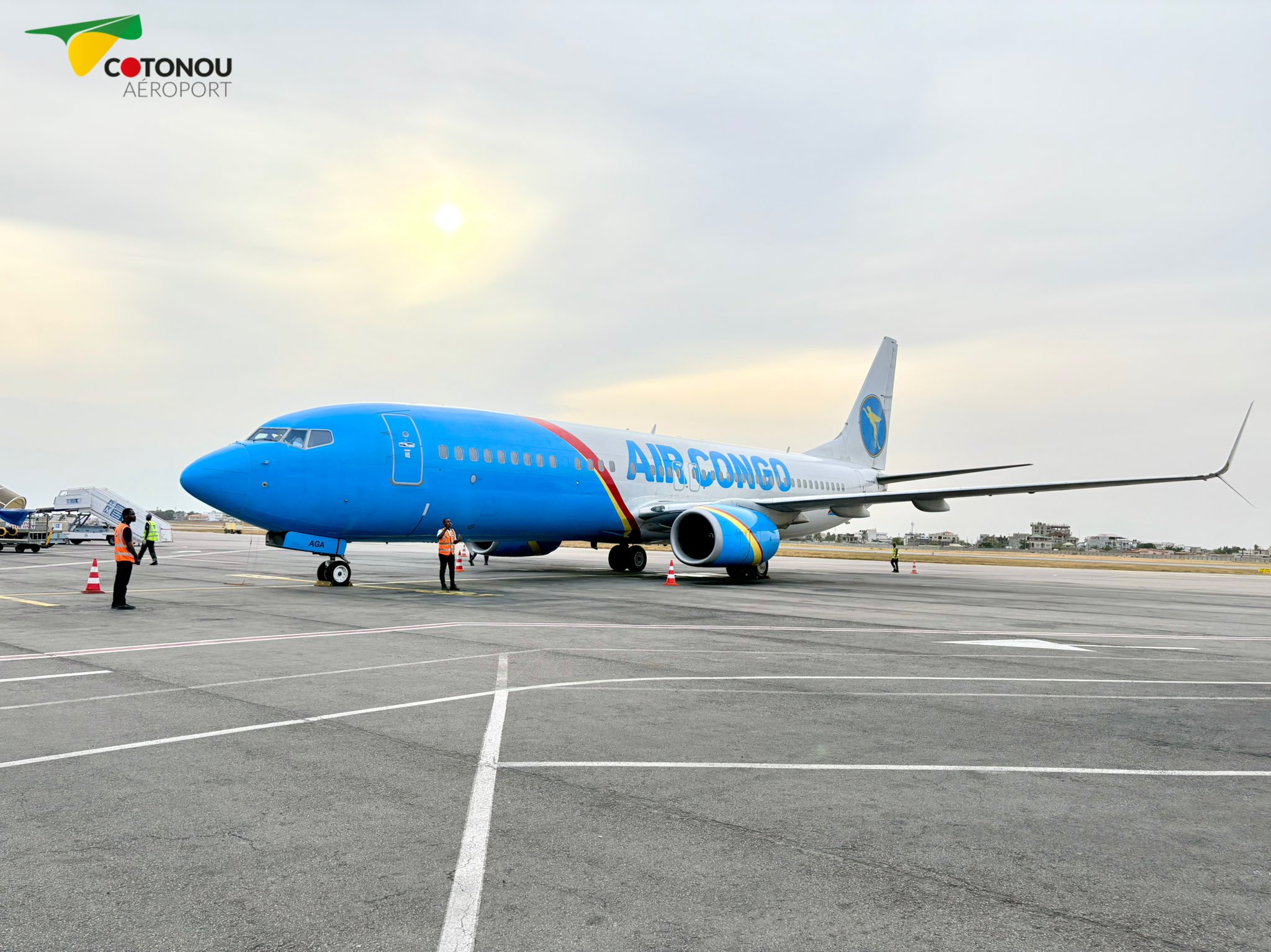 L’Aéroport international Bernardin Gantin de Cotonou a accueilli, ce samedi 28 mars 2026, le vol inaugural de la compagnie Air Congo en provenance de la République Démocratique du Congo, marquant une nouvelle étape dans le renforcement de la connectivité aérienne en Afrique de l’Ouest et centrale. L’appareil a été salué à son arrivée par un « water salute », une haie d’honneur formée par des jets d’eau, symbole traditionnel de bienvenue dans l’aviation civile pour les nouveaux opérateurs ou les nouvelles liaisons.
